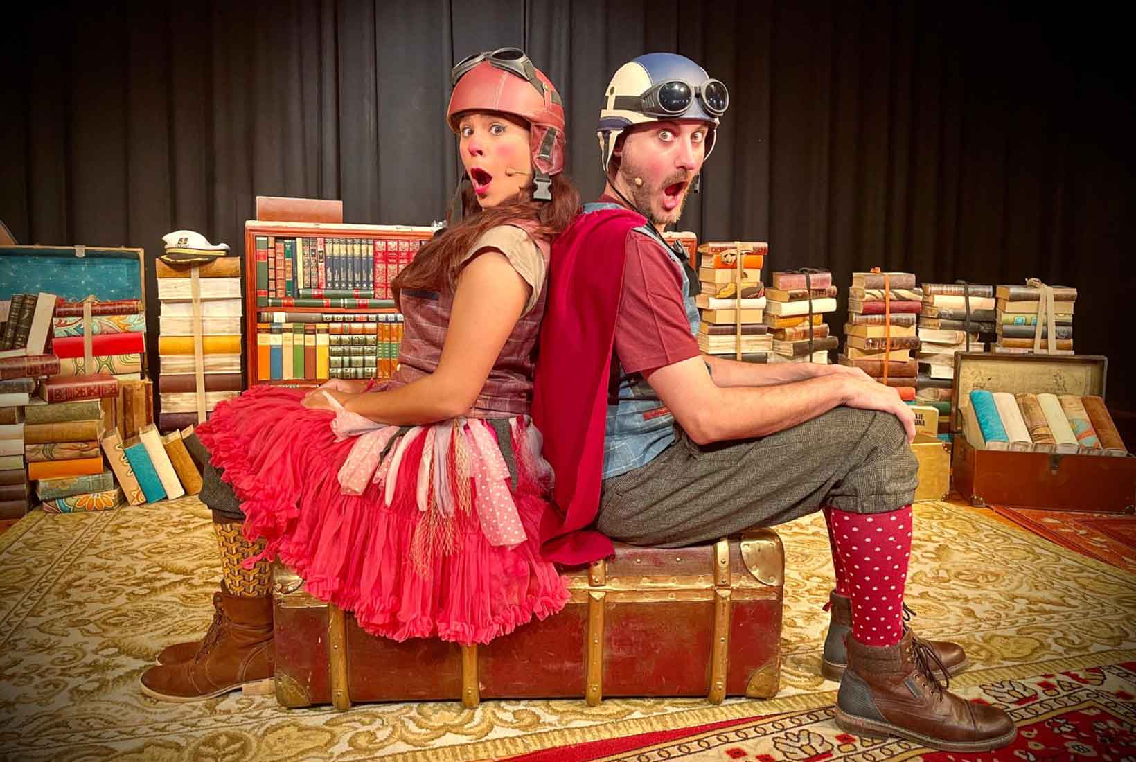 Y los sueños, libros son. De Producciones Kinser (Zaragoza). I Premio Santa Isabel de Artes Escénicas modalidad de teatro infantil y familiar 2021. Genaro y Jimena no pueden dejar de leer. Bueno,