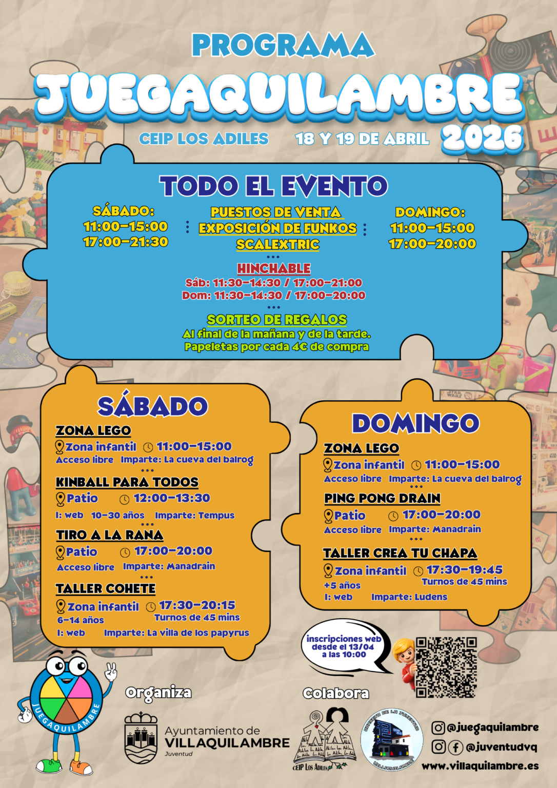 El acceso al evento será libre y gratuito para toda la familia. Algunas actividades requieren inscripción previa a partir del 13 de abril en la web del Ayuntamiento de Villaquilambre.