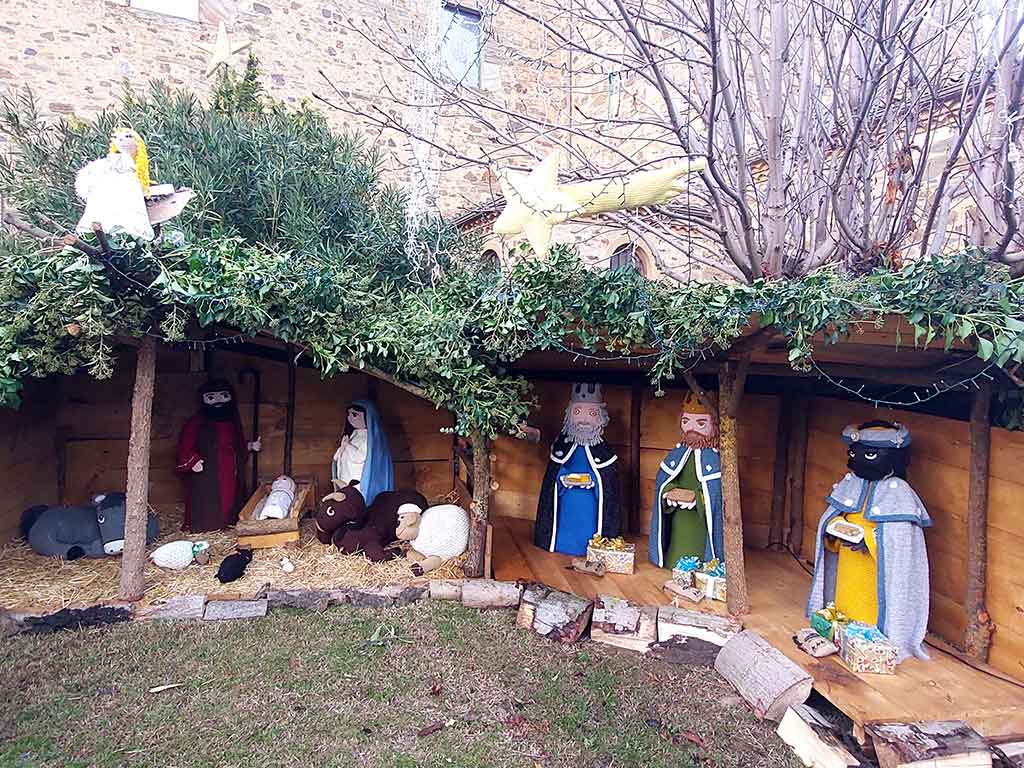 El nacimiento refleja las costumbres y tradiciones de la zona y en él encontramos significativos edificios de la localidad como el colegio o el propio árbol navideño. También podemos ver el bibliobús que lleva los libros hasta el pueblo, la matanza, los monjes del convento y muchos otros personajes de la localidad.